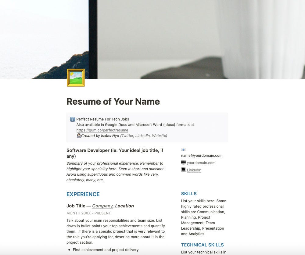 10 Reasons Why You Should Use Notion For Your Online Resume By Isabel Nyo Level Up Coding